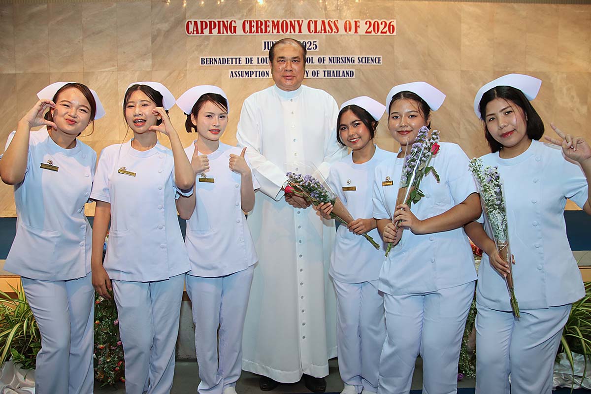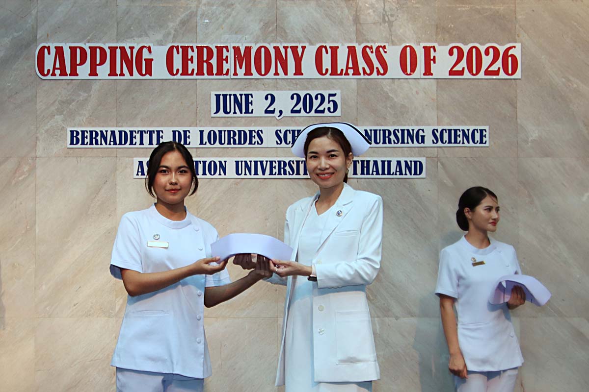 Assumption University of Thailand (AU)  held the Capping Ceremony for the Class of 2026 on June 2, 2025, from 13:30 to 16:00 hours at the Auditorium Hall, Hua Mak Campus. This solemn tradition marks a significant milestone for second-year nursing students from the Bernadette de Lourdes School of Nursing Science, signifying their readiness to serve the society with compassion and professionalism.