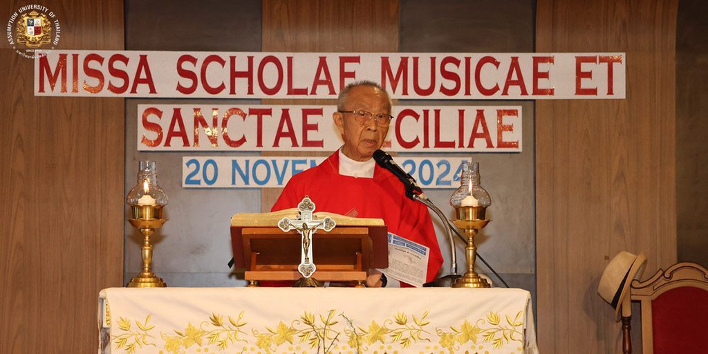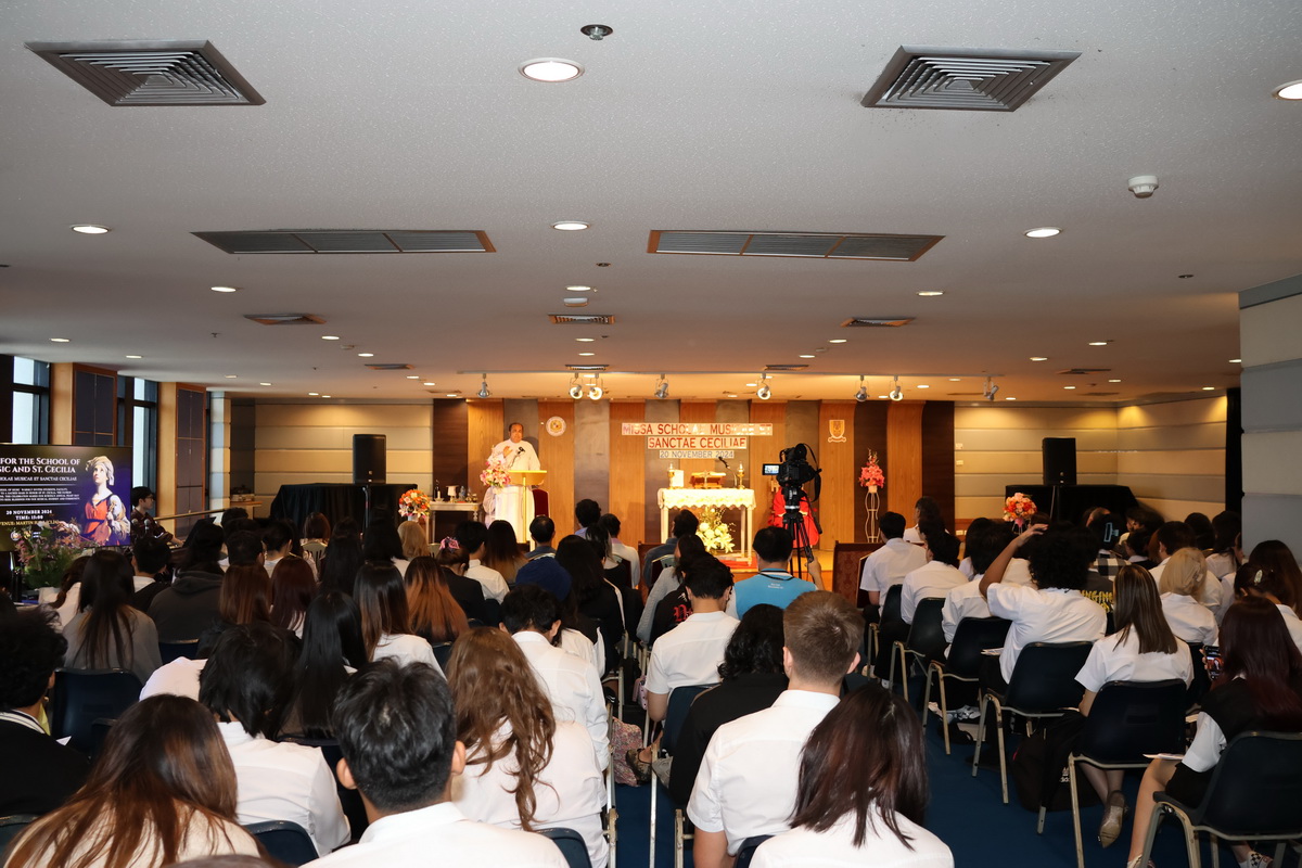 On November 20, 2024, the Louis Nobiron School of Music at Assumption University of Thailand (AU) hosted the Mass for the School of Music and St. Cecilia in Martin Hall, CL24, at the iconic Cathedral of Learning Building, Suvarnabhumi Campus. This sacred celebration honored St. Cecilia, the patron saint of musicians, in a spirit of unity, artistry, and gratitude.