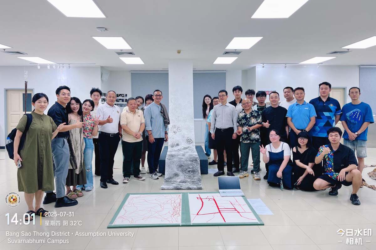 Graduate students from the Master’s Program in Fine Arts and Design (Art and Design track) at Assumption University of Thailand (AU) presented a striking exhibition themed “Time,” showcasing their final creative works developed in the Art and Design Media course. The show offered a compelling glimpse into the evolving voices of emerging artists exploring the interplay between art, self, and society.
