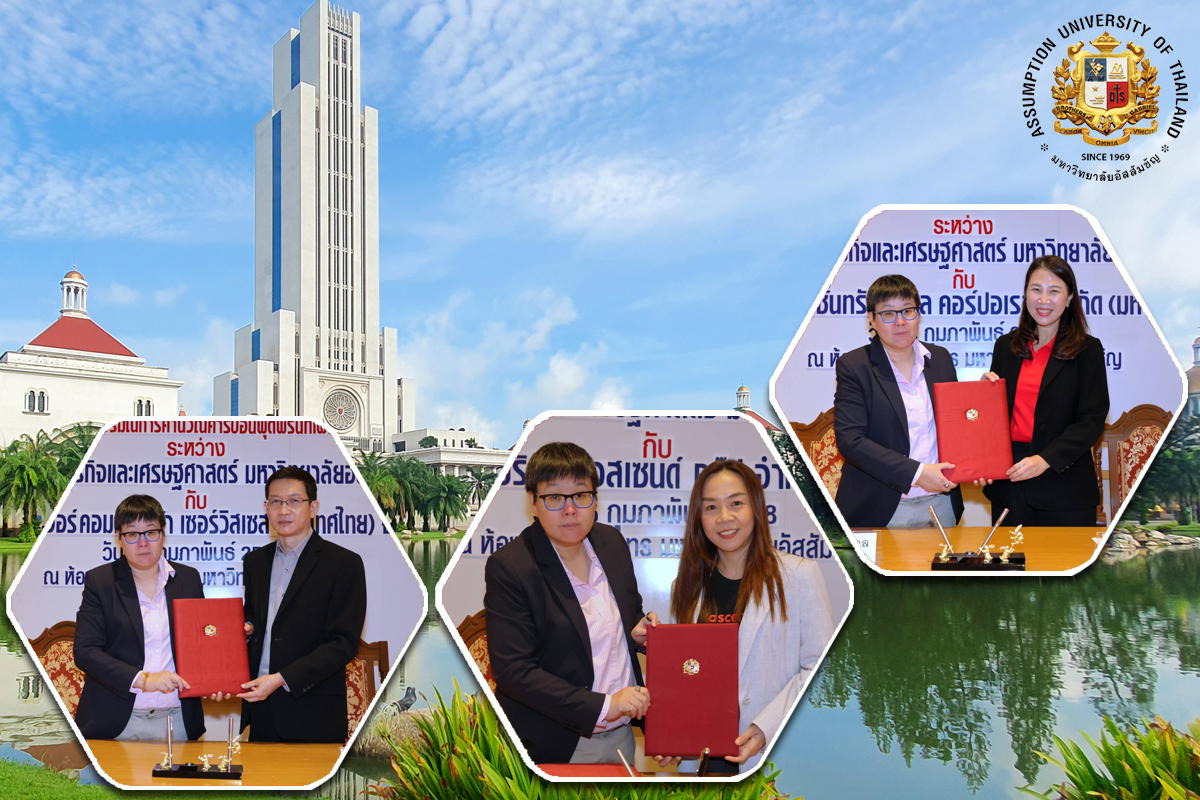 Martin de Tours School of Management and Economics (MSME Business School), Assumption University of Thailand (AU) , is delighted to announce the signing of Memoranda of Understanding (MoUs) with three leading organizations: Central Retail Corporation, Evercomm Data Services (Thailand), and Ascend Group. These strategic partnerships aim to promote educational advancement and foster collaborative initiatives that will benefit students, faculty, industry, and the broader community.
