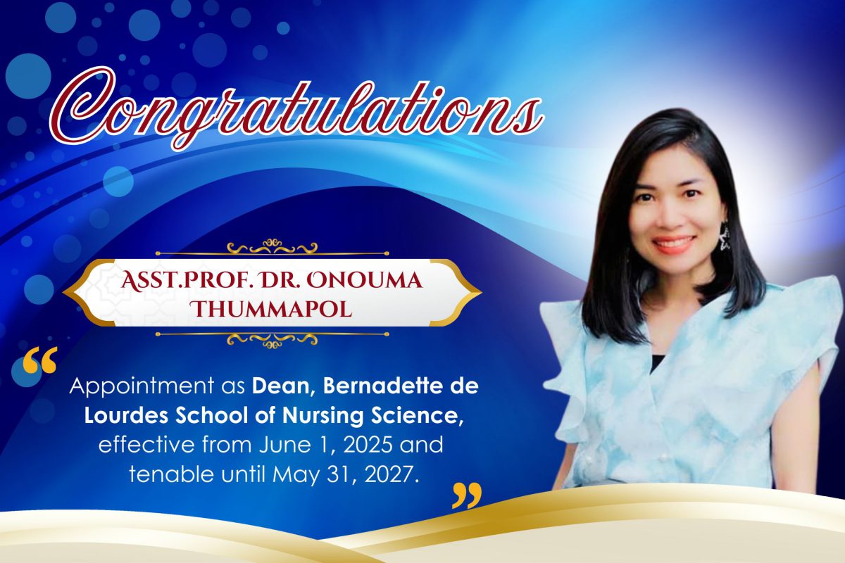 Appointed as Dean of the Bernadette de Lourdes School of Nursing Science, Asst. Prof. Dr. Onouma brings deep experience in nursing education and a passion for community health. Her appointment begins June 1, 2025 and is tenable until May 31, 2027, succeeding Dr. Phat Prapawichar.
