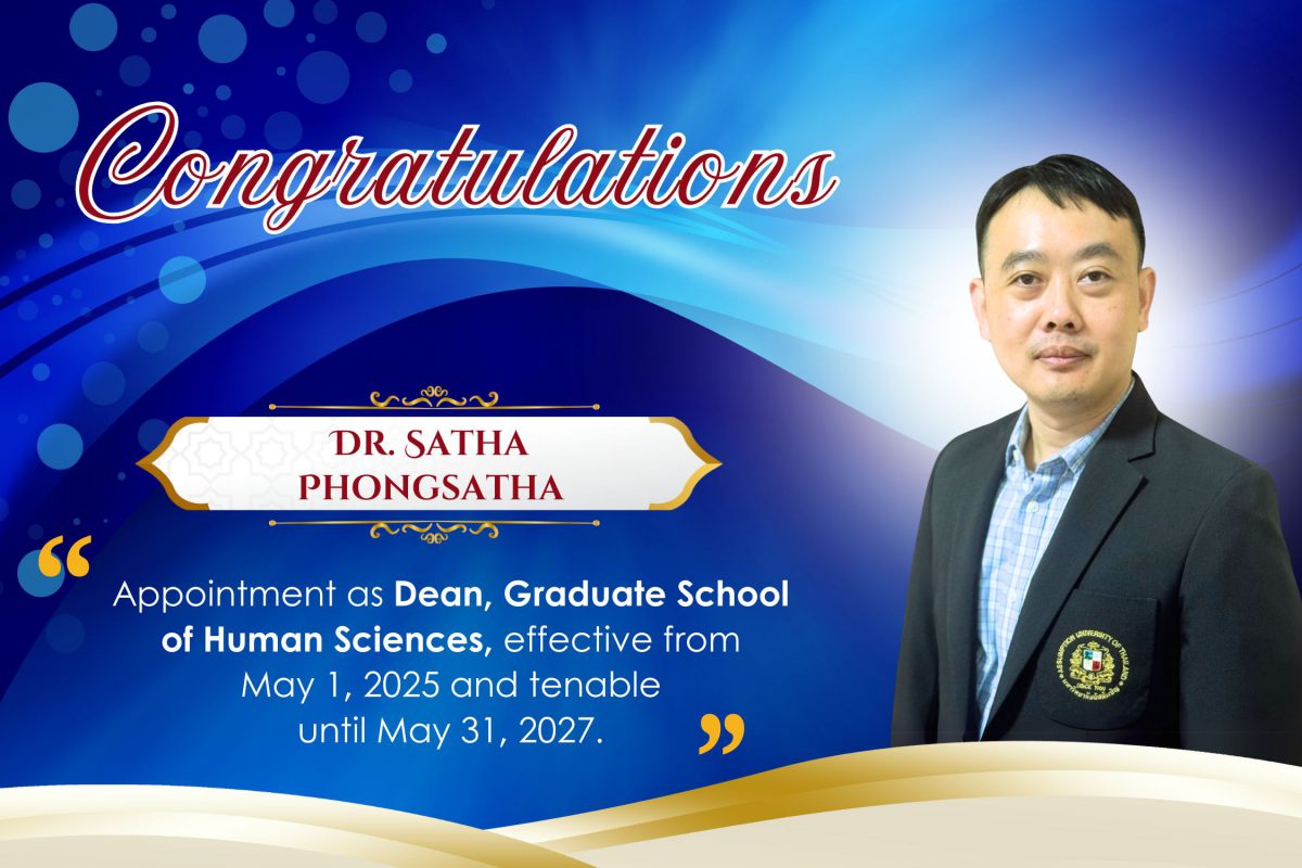 Named Dean of the Graduate School of Human Sciences, Dr. Satha will guide the school in advancing interdisciplinary research, graduate education, and human development studies. His appointment is effective from May 1, 2025 to May 31, 2027, succeeding Dr. Kitikorn Dowpiset.