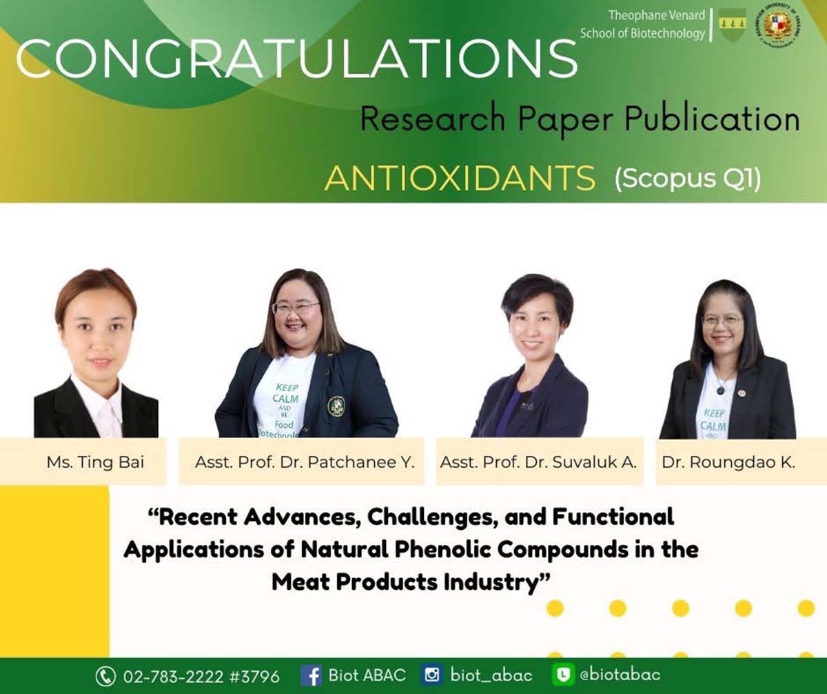 The Theophane Venard School of Biotechnology at Assumption University of Thailand (AU) continues to push the boundaries of food science innovation, earning a prestigious Scopus Q1 publication in Antioxidants, a...