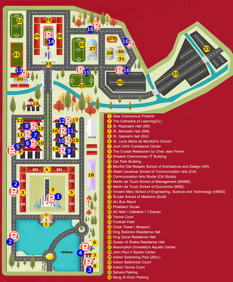 Contact to request a parking sticker for people inside Assumption University and request a parking space for people visiting the university.