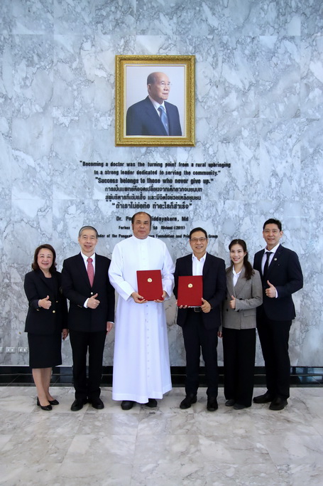 The signing ceremony was held at the St. Luke School of Medicine building at Suvarnabhumi Campus. The event was attended by senior leadership from all parties, including Dr. Satit Viddayakorn, Chairman of the Pongsak Viddayakorn Foundation; Ms. Tanatorn Viddayakorn, Foundation Executive; and Dr. Wityavate Rakkulchon, M.D., Co-CEO of Principal Capital Plc. (PRINC Group). Representing Assumption University of Thailand were Rev. Bro. Sirichai Fonseka, f.s.g., Ph.D., President; Asst. Prof. Dr. Uree Cheasakul, Vice President for Academic Affairs; and Prof. Dr. Suwat Benjaponpital, Dean of the School of Medicine.