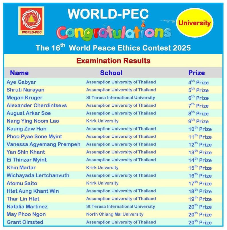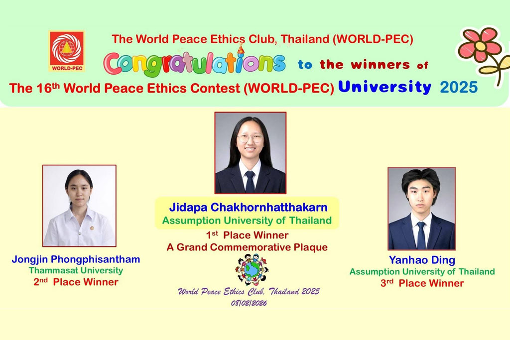 Assumption University of Thailand Students Participate in The 16th World Peace Ethics Contest (WORLD-PEC) University 2025 on January 23-25, 2026