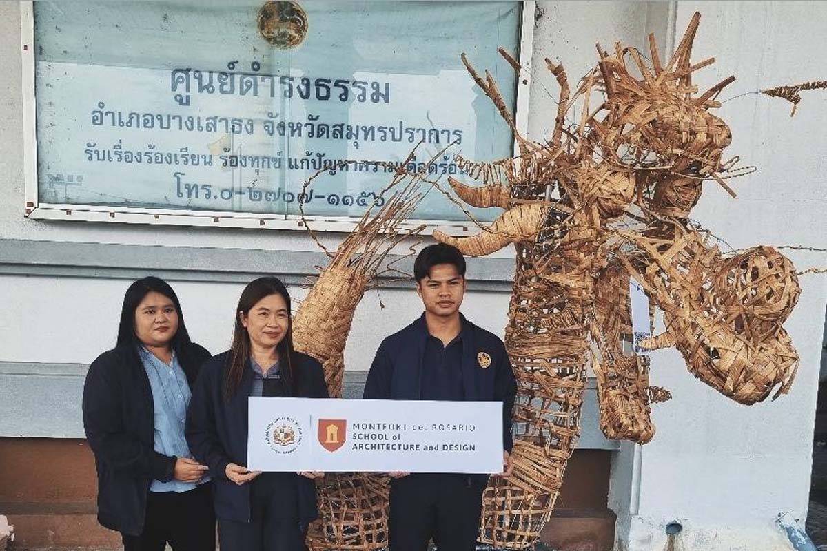 Graduate students from Assumption University of Thailand (AU)’s M.A. in Art and Design program. Directed by Asst. Prof. Chutarat Laomanacharoen and Ajarn. Orn_Laor Homsettee faculty member School of Architecture and Design under the guidance of Dr. Apichart Intravisit in designing the learning process leading to public art criteria,students worked with local residents to co-created four symbolic works—FULU, The Living Vine and the Voice of the Dragon, Wind Weaving, and Green Vine Gathering—reflecting prosperity, protection, and unity.