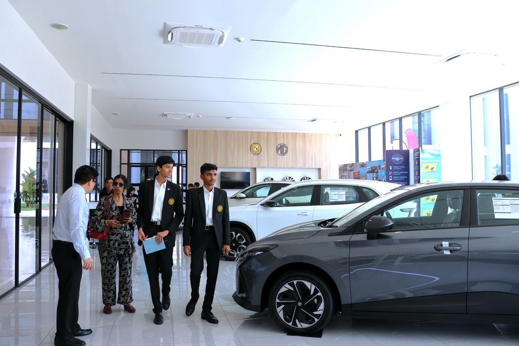One of the most memorable moments came at the St. Gabriel Mary Research and Learning Center, where the group visited the MG showroom, connecting their academic interests with real-world innovation. The tour also included VMES Laboratories, giving the students a close-up look at AU’s hands-on learning environment and the spaces that support discovery and future-ready skills.