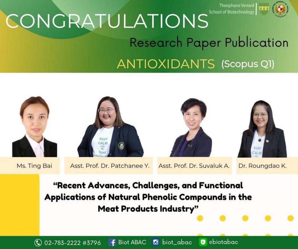 The Theophane Venard School of Biotechnology at Assumption University of Thailand (AU) continues to push the boundaries of food science innovation, earning a prestigious Scopus Q1 publication in Antioxidants, a leading journal renowned for cutting-edge research in biotechnology and sustainability.