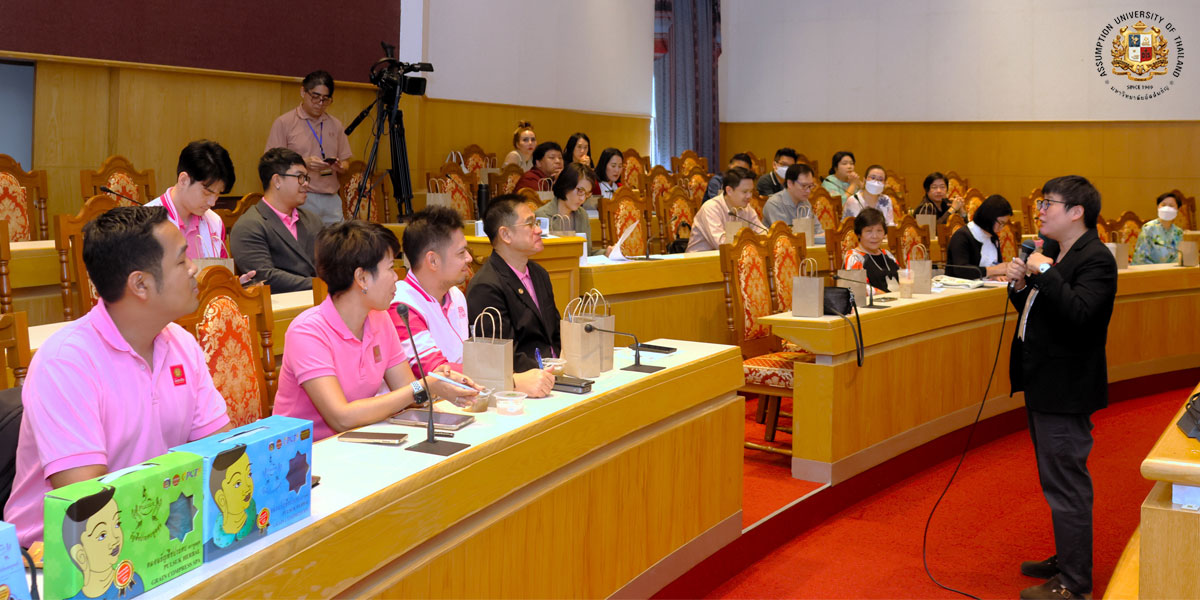 Assumption University of Thailand (AU) proudly hosted a significant presentation event on Wednesday, December 18, 2024, highlighting a range of community products and services proposed for inclusion in the esteemed Yuwaphat Rak Thin Project 2025. The event took place at the University’s Suvarnabhumi Campus and was honored by the presence of the Assistant Director of the Government Savings Bank alongside their executive teams.