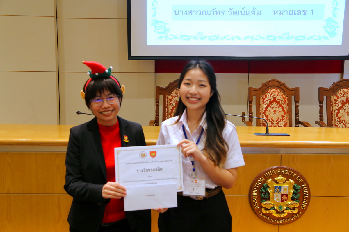 Assumption University of Thailand (AU) proudly announces the winners of its esteemed Thai Speech Contest held under the theme “The King’s Virtue for Circular Economy and Sustainability”. The event took place on December 22, 2023, at Wiset Sri Samut Room, the CL Building, Suvarnabhumi Campus.
