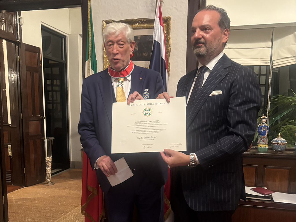 The Assumption University of Thailand (AU) Rector Magnificus Rev. Bro. Bancha Saenghiran, f.s.g., Ph. D. and Mr. Glen Chatelier attended the decoration Ceremony for an AU Alumnus, Mr. Gaudenzio Enzo Peroni ( MSc CP, class of 2000) at the invitation of the Italian Ambassador Mr. Paulo Dionisi at the Residence of the Italian Ambassador, on March 16, 2026 in the evening. Mr. Peroni was awarded the decoration of Commander of the Star of Italy, recognizing his success in the business of bringing Italian lifestyle cuisine to Thailand and more, for highlighting Italian UNESCO Heritage sites. Furthermore, drawing upon his AU degree he has led Pan Asian workshops on Leadership and Emotional Quotient attributes in the new leadership or the 21st. Century. Commander Peroni is the only known leading expert on the Art and Management applications of Leonardo da Vinci and has lectured on the theme to the Kyoto, Sophia, Oxford,Chulalongkhorn , AIT and AU Faculty, Students and Alumni. His decoration on March 16, 2026 is the second, having earlier been awarded the Cavalier of the Star of Italy by the President of Italy.