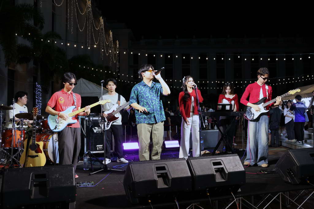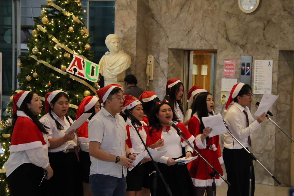 He spoke about the importance of showing up in the true spirit of Christmas, urging everyone to look inside themselves and share kindness, generosity, and a spirit of giving. He reminded the AU family that the real gift of the season is the light we share with one another. Moments later, he led the Hua Mak tree lighting, filling the plaza with festive radiance. Carols, student performances, and holiday smiles filled the campus with Christmas joy.