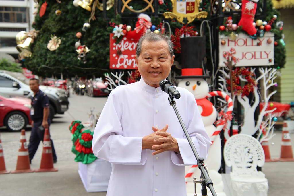 Earlier in the day, Hua Mak Campus welcomed the Christmas season with a lively celebration at the entrance of A Building. Student representatives opened the program before the highlight of the afternoon: a warm and inspiring welcome speech by Rev. Bro. Bancha Saenghiran, f.s.g., Ph.D., beloved Rector Magnificus of Assumption University.