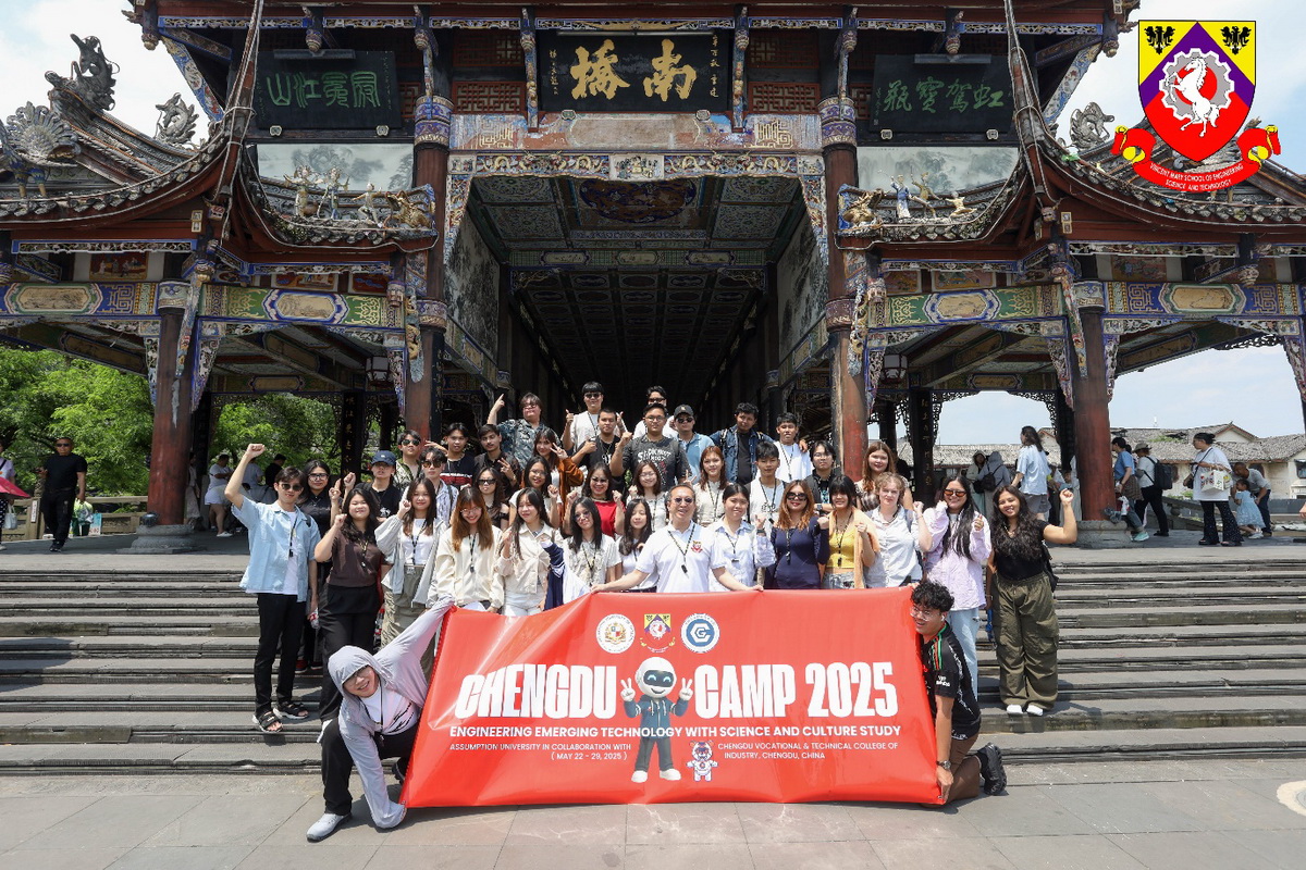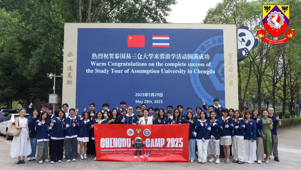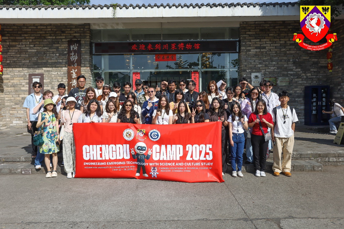 Vincent Mary School of Engineering, Science and Technology has organized “VMES 2nd International camp: Chengdu, China” from 22nd – 29th May 2025. In the event 39 AU students, Staff and Lecturers participated. The camp was led by Narong Aphiratsakun, Dean of Vincent Mary School of Engineering, Science and Technology and Benjawan Srisura, Assistant Dean of Administrative and Student Affairs.