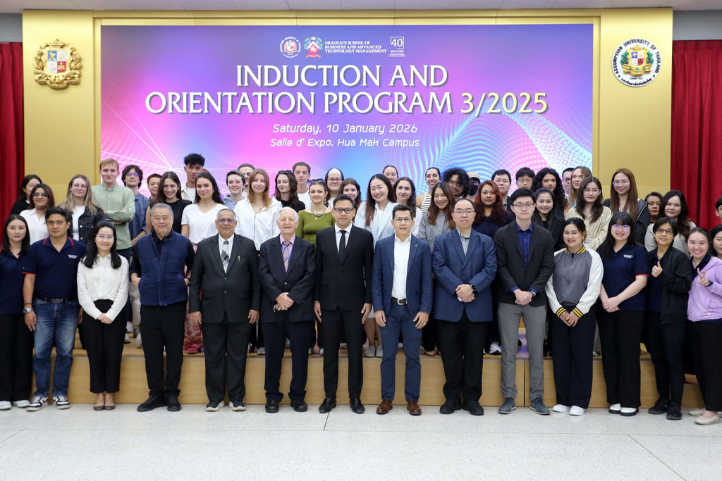 The Graduate School of Business and Advanced Technology Management (GS-BATM) at Assumption University of Thailand (AU) officially welcomed new graduate students during the Induction and Orientation Program 3/2025, held on Saturday, 10 January 2026, at Salle d’Expo, Hua Mak Campus.