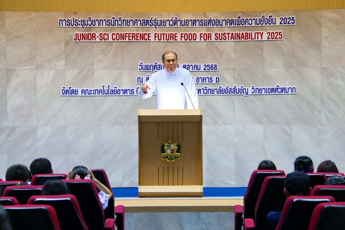 Assumption University of Thailand (AU), through its Theophane Venard School of Food Biotechnology and Innovation, hosted the Junior-Sci Conference: Future Food for Sustainability 2025 on October 16, 2025 at the Hua Mak Campus. The academic gathering brought together bright young minds from schools across Thailand to explore the theme “Future Food for Sustainability”.